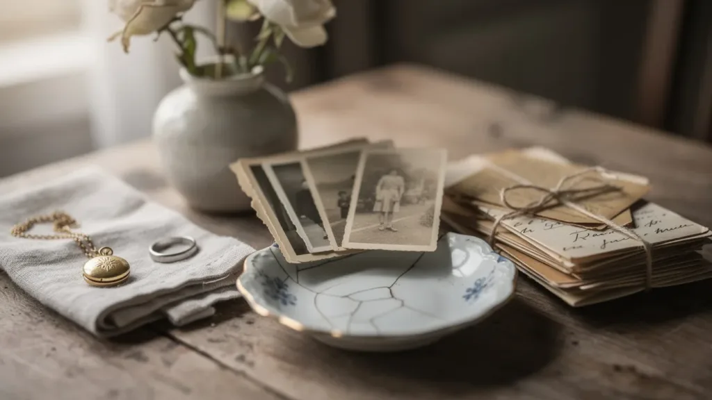 Het kan helpen om deze voorwerpen een speciale plek te geven in je huis. Dit maakt het makkelijker om ze een waardevolle plaats te geven in je herinneringen.